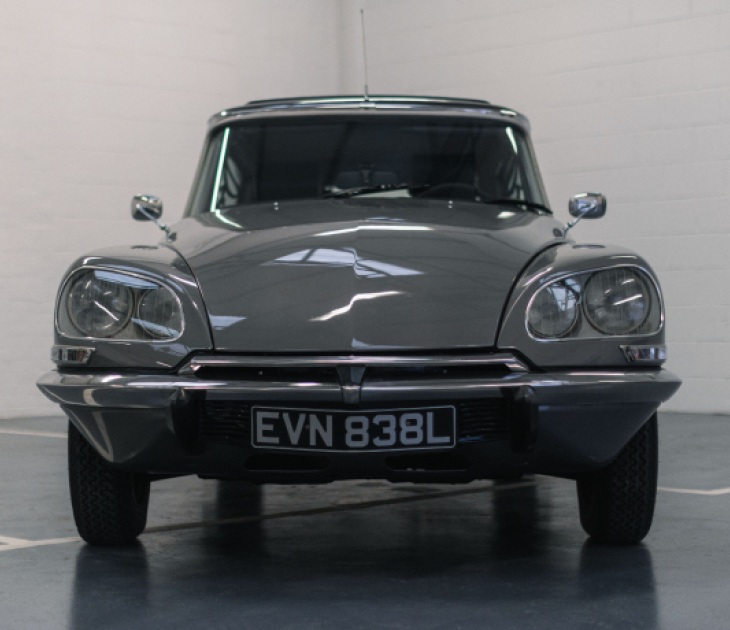 Add a sense of occasion to any drive with this gorgeous Citroën DS 23 Pallas for hire.