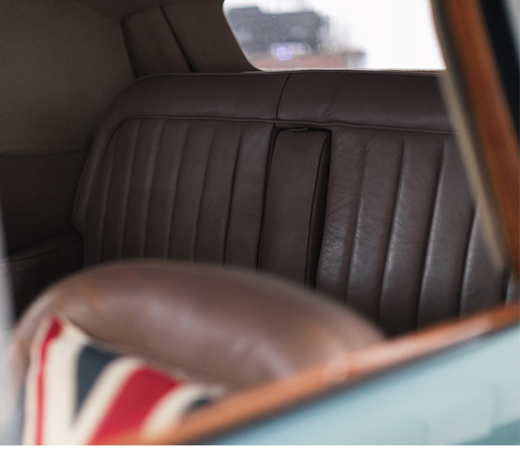 With Union Jack decals on the seat and front grille, a convertible soft top and a punchy 2.7-litre engine with automatic transmission, this classic car for hire ensures a smooth and stylish arrival at any event.